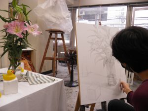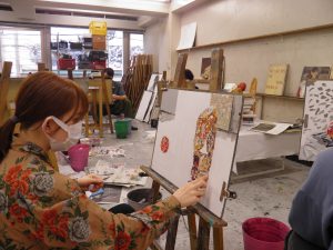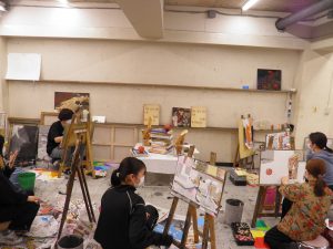 福岡中央美術では、油画と日本画は同じアトリエで制作しています。